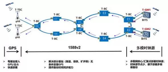 当前5G时间同步主流方案为“卫星时钟+传输网1588v2时钟”。