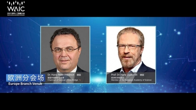 此次,今年的中欧企业AI治理对话论坛主要是通过线上形式召开,中国桥主席汉斯·彼得·弗里德里希博士(Dr. Hans-Peter Friedrich),中国电子学会秘书长、党委副书记,中国数字经济百人会秘书长陈英先生,上海市人工智能协会秘书长钟俊浩先生以视频方式出席欧洲分会场活动并致辞。