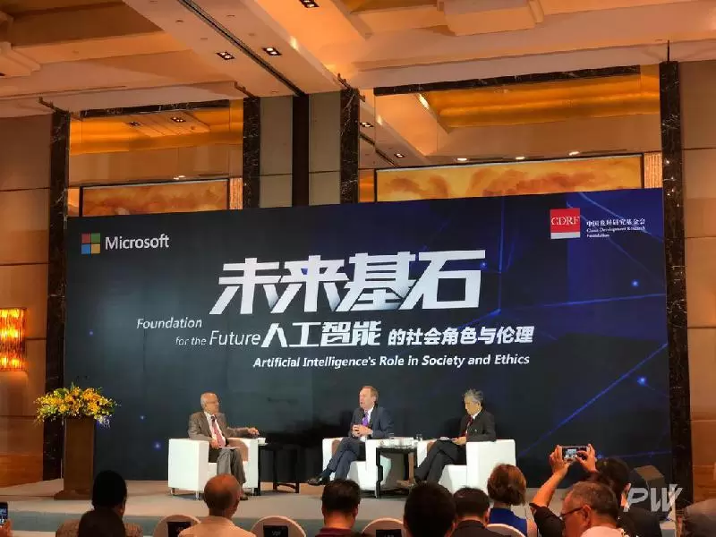 微软公司副总裁施博德(Brad Smith)、中国发展研究基金会副理事长、秘书长卢迈以及清华大学公关管理学院教授兼院长薛澜在现场展开了有关人工智能进入人类生活一系列问题的讨论。