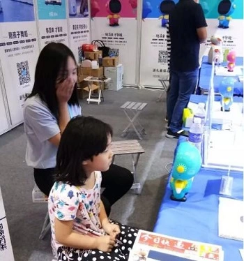 小墨Mini在现场至受欢迎,并出现了一个小故事:一位小孩因沉浸于与小墨的互动学习,与父母走丢,墨馨现场工作人员与主办方紧急播报为孩子寻找父母。