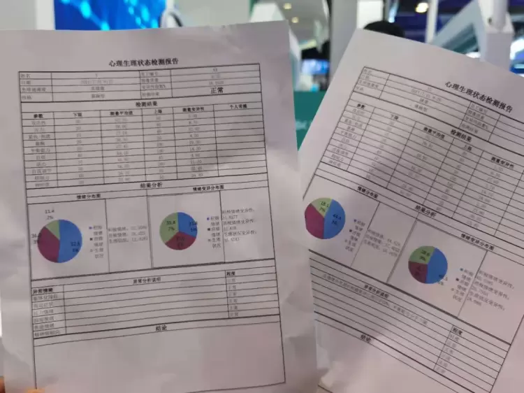 在2021年世界人工智能大会(WAIC)上,记者看到有一个“知心情感计算”的展区,观众竞相排队参与一个心里测试: