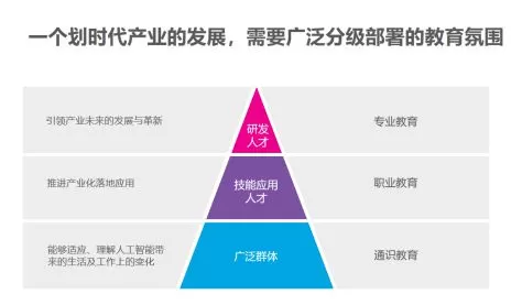 庞大的教育需求,要靠传统教育与科技创新企业深度融合去承接,借企业的创新技术和前沿科技来建立人工智能人才培养体系。钟永认为“龙头企业应当在其中担当衔接和推动的责任,链接行业、社会组织及学校,进行产教融合、校企合作和生态建设,输出专家及教学资源,构建教育体系,最终推动人才培养”。优必选科技作为人工智能及智能机器人产业的拓荒牛,也是人工智能教育的先行者,多年来积累了深厚的人工智能前沿技术、应用与实践经验,并基于此推出了人工智能教育解决方案,以专业力量赋能教育行业。 在人工智能综合素质的构建上,优必选科技则是围绕内容属性,将人工智能基础知识作为教学内容,帮助学生掌握人工智能领域的基本原理及相关应用。进行以能力培养为核心的跨学科教学,以链接真实世界为教学出发点,校内重在打基础、建专业,校外以促兴趣、重实践为目标,依托热门产业需求,共建专业教育体系。