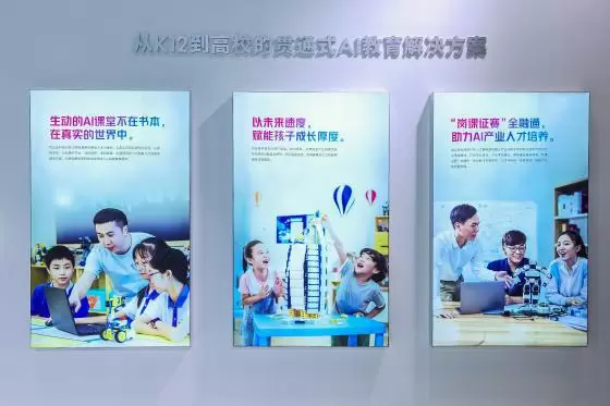 除了钟永的精彩演讲,优必选科技还在展台上展示了从K12到高校的贯通式人工智能教育解决方案,基于人才培养链条,探索不同阶段人工智能人才培养模式。