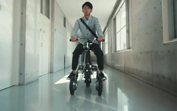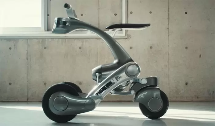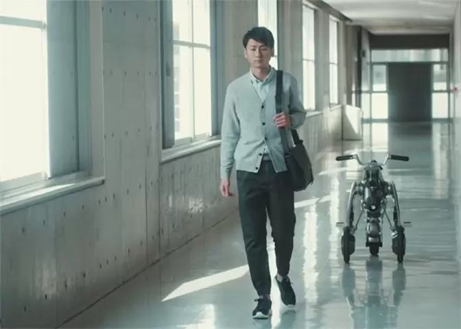 机器人平时跟在人的身后辅助购物等,或自主行驶到指定场所去接人。在人乘坐时,机器人可自动变形为长75厘米的摩托车。