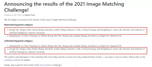 腾讯优图荣获CVPR2021 Image Matching Workshop双赛道冠亚军