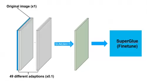 我们使用SuperPoint+Autoencoder+SuperGlue作为我们的关键点匹配pipeline。其中SuperPoint用于提取关键点和对应描述子,Autoencoder用于特征压缩,SuperGlue用于关键点匹配,最后通过DEGENSAC进行离群点过滤。同时我们优化了SuperGlue的训练过程和损失函数,提升了模型在比赛数据集下的匹配精度。
