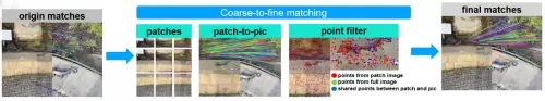 我们提出了前背景分割和coarse-to-fine的匹配结构,进一步提升关键点匹配的有效性。其中前背景分割可以有效过滤掉与匹配无关的背景部分。Coarse-to-fine的匹配结构可以提升拍摄尺度差异过大导致的匹配率过低的问题。