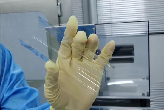 相比CPI材质,UTG具有不易产生划痕,触摸手感更接近于用户习惯的直板智能手机特点。另外,在透光性方面,由于CPI本身依旧是薄膜,透光率普遍小于90%,而透光率超过90%的UTG凭借着玻璃材质的先天优势,能够为用户带来更好的观感体验。另外,在温度性能上也比CPI领先一番,玻璃化转变温度可大于600°C,但由于量产技术存在难度、良品率过低,使得UTG玻璃一直无法成为显示屏盖板的主流材料。