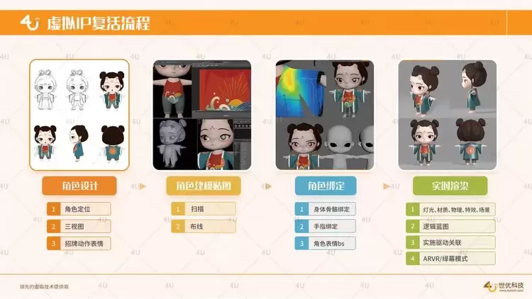 相比普通虚拟形象制作,世优科技经过多年的技术积累,2012年就自主研发了首家实时数字人创作平台“虚拟工厂”,实现了面部及身体扫描、建模、绑定、实时动画、解算和渲染等全流程独立完成制作,打通了实时虚拟数字人高质量制作的全链条。