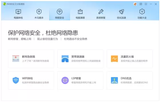 尤为值得一提的是,虽然视觉与操作上进行了大幅度的简化,但在安全守护方面“极速版”的能力不仅没有削弱,反而更加强大。其中“网络安全”模块,可对用户网络环境进行安全监测管理,而该功能的背后,是360强大的安全能力作为技术支撑。据了解,基于过去十多年在网络安全行业的积淀,360构建了以安全大脑为核心的安全能力框架。