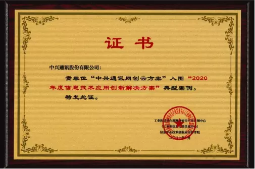 中兴通讯网创云方案入围工信部信息技术应用创新解决方案典型案例