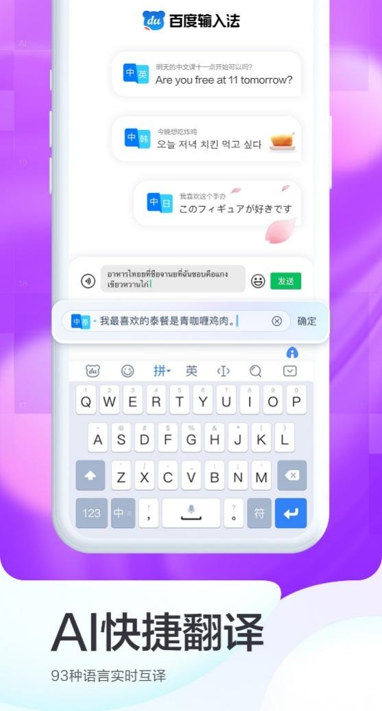 除AI助聊新功能外,在语言翻译方面百度输入法的表现同样抢眼。此次更新,百度输入法搭载业内领先的百度翻译能力,上线支持95种语言互译的业内最强“快捷翻译”功能,不仅可以解决用户沟通更快、更精准的诉求,也能满足用户在多场景的使用需求,助力实现“沟通无国界”。