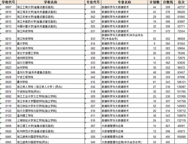 在浙江,浙江理工大学今年新增大数据管理与应用专业招生;中国计量大学今年新增人工智能、智能感知工程两个专业招生;温州理工学院今年新增机器人工程、物联网工程、数据科学与大数据技术和金融科技4个专业。