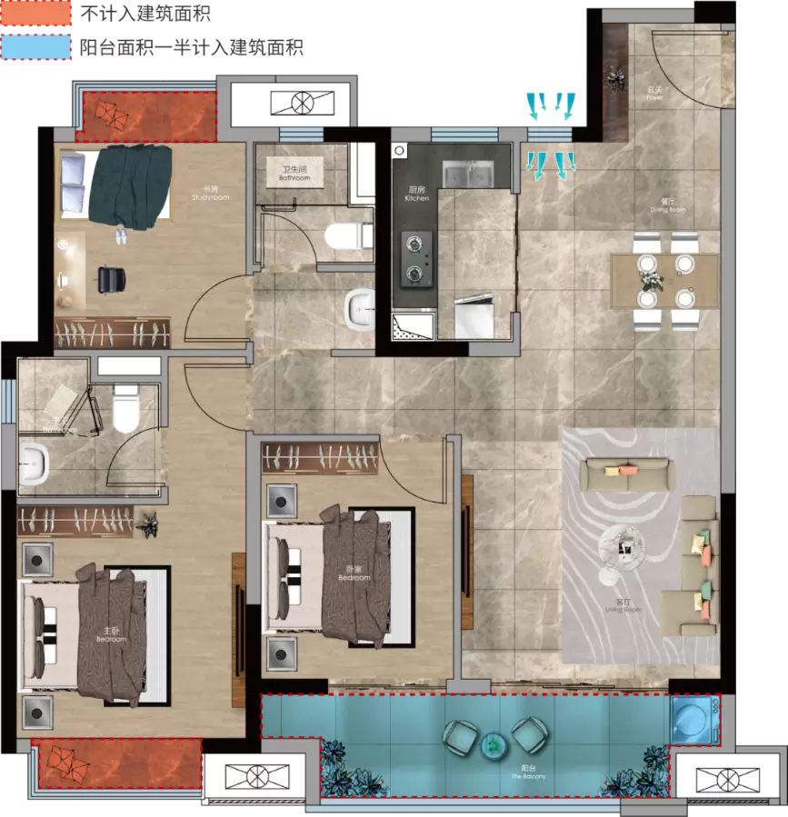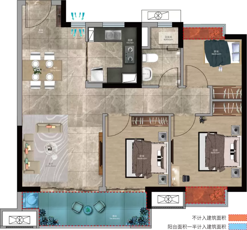 好的户型,往往是你一推门便能感受到的,为什么?因为光线,因为通风,因为那一方阳台。