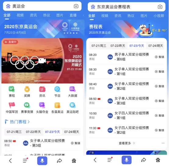 在百度,用户一站式获取奥运资讯、比赛赛程、奖牌榜等最全奥运信息,全方位“零距离”享受奥运观赛体验。