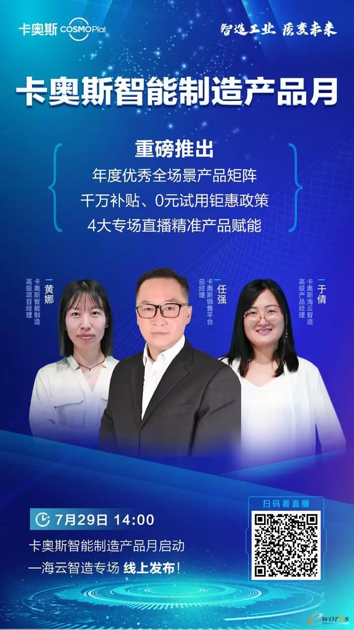 7月29日14点,卡奥斯智能制造产品月启动暨首场海云智造专场活动即将正式开启。首场活动将公布产品月活动、补贴等各项具体政策,同时,智能制造成熟度评估服务和海云智造数字化生产运营管控系统两款产品也将和企业见面!