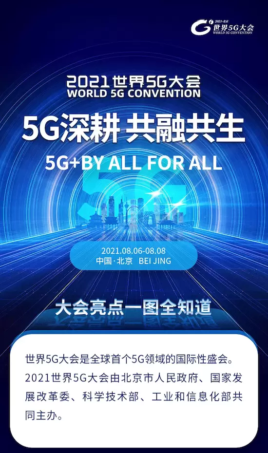 2021年8月,世界5G大会将再聚京城。本届大会以“5G深耕,共融共生”为主题,包括论坛、展览展示、5G应用设计揭榜赛等。大会将邀请国内外政、产、学、研重量级嘉宾出席,届时,百余位全球知名专家、学者、企业家将齐聚北京,深入交流,凝聚共识,全面聚焦共建数字基础设施,致力推动产业合作,跨界融合,搭建5G 领域国际交流合作以及产业链协同创新的桥梁,构筑5G 深耕行业的展示及推广平台,助力打造5G 与其他行业领域共融共生,蓬勃发展的良好局面。