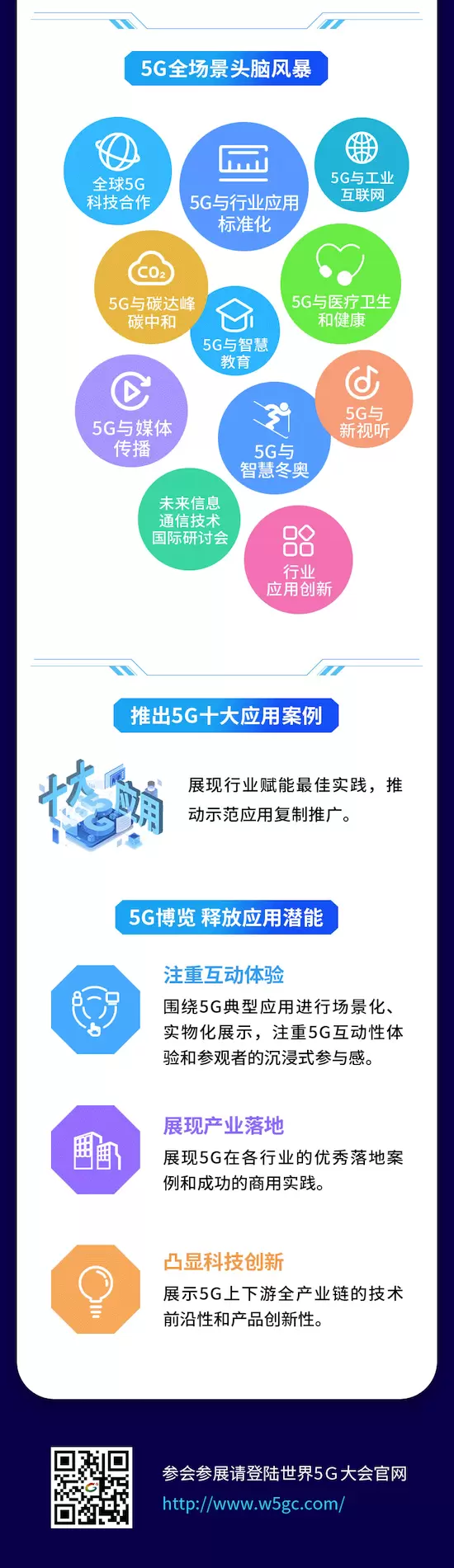 和大会同期举办的展览展示,将全面呈现5G全产业链的技术进步和产品创新,5G在各行业的优秀落地案例亦将集中展出。参观者在2万平方米的展区中,不仅可以看到围绕5G典型应用的场景化、实物化展示,更能沉浸式体验5G所推动的非凡新世界。