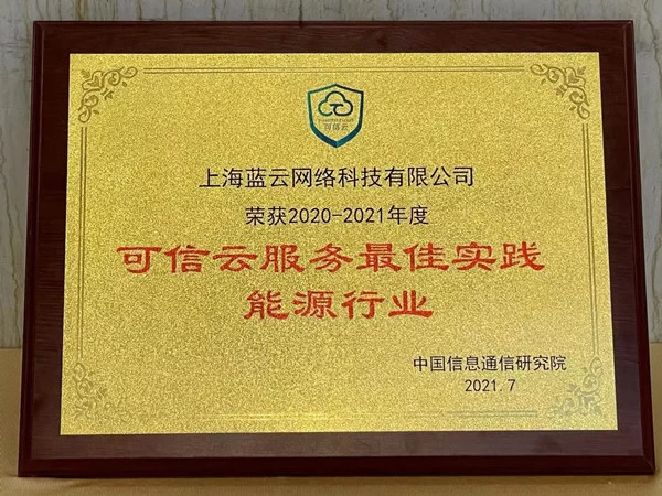 2021年7月28日,北京 —— 由中国信息通信研究院、中国通信标准化协会联合主办,以“数字裂变,可信发展”为主题的“2021可信云大会”在北京召开。本届大会重磅发布了多份云计算行业白皮书,颁布了多项行业服务、技术服务大奖。上海蓝云网络科技有限公司(以下简称世纪互联蓝云)凭借多项可信云认证积累以及在能源行业的扎实耕耘,荣膺“2020-2021可信云服务最佳实践 能源行业”大奖。
