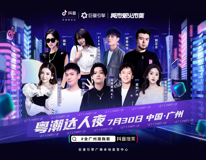 7月30日,由广州市委宣传部、广州市文化广电旅游局指导,广东今日头条科技有限公司、广州塔旅游文化发展股份有限公司主办,巨量引擎广佛本地直营中心基于“城市烟火市集”平台IP承办的"全广州潮我看——粤潮达人夜"派对活动将在广州塔塔畔吧举办。活动特邀100余位抖音创作者参会,借力抖音创作者们超亿级粉丝声量为广州发声,探店珠江两岸景区、文化场馆及周边商圈,助力广州线下经济回暖。