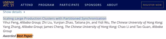 阿里云提交的论文名为《Scaling Large Production Clusters with Partitioned Synchronization》(PDF版),探讨了飞天如何解决大规模计算资源的调度问题,被收录并荣获最佳论文奖,这也是ATC最佳论文首次出现中国公司的身影。