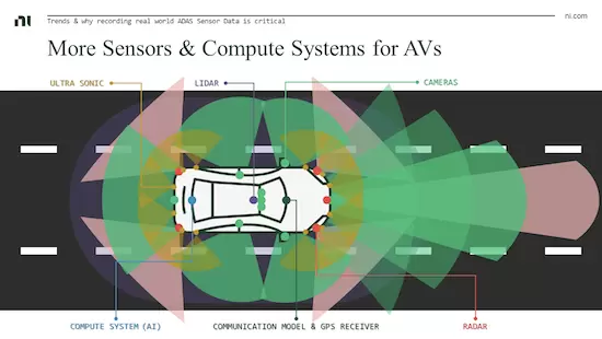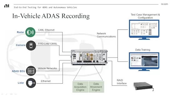 郭堉表示:“提高数据记录质量是降低整个测试成本的关键抓手,NI推出了基于PXI平台的ADAS数据记录系统(ADAS record system),PXI的机箱背板上有一条非常精确的同步总线,可以实现各个仪器间的精确同步。NI的ADAS数据记录系统能解决两大问题:一是不断增多的传感器带来的高带宽要求,二是不同传感器之间的精确同步。”
