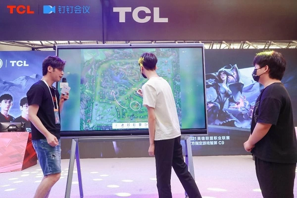 在UDE展上,电竞诗人王多多联合EDG电子竞技俱乐部英雄联盟分部明星队员空降TCL展台助阵,现场用起了TCL NXTHUB V60,回顾过往赛季经典赛事片段,并进行战术分析、讲解,让“办公”和“玩”游戏一样简单有趣。