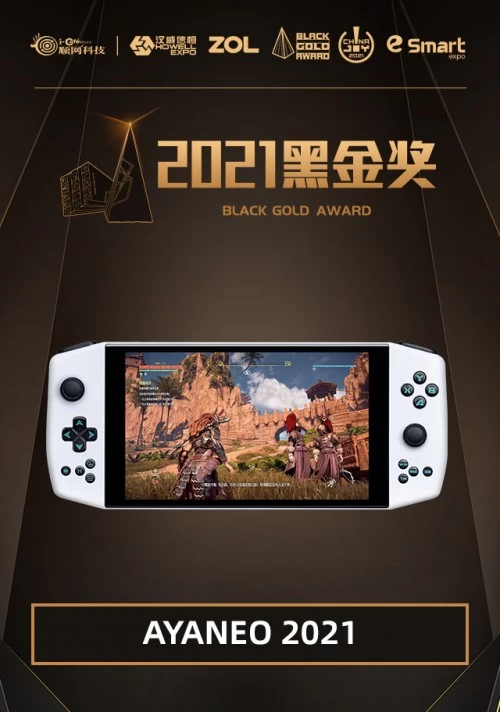 因为足够优秀,中关村在线还为 AYANEO 2021 系列产品颁发了「 黑金奖 BlackGold 」,中关村在线设立黑金娱乐硬件大奖的初衷,是希望表彰那些在设计维度、技术维度、专业领域上取得创新,并在市场上取得了良好口碑的产品。对于玩家而言,黑金奖堪称行业内优秀娱乐硬件的肯定,是玩家们在选购娱乐硬件时的一个衡量标准。在同行业里,AYANEO 也是唯一一家获得这个奖项的,可见 AYANEO 在设计、性能,以及体验上,确实有独到之处。
