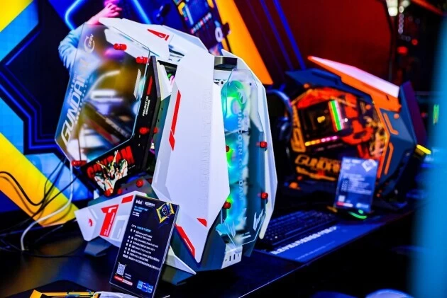 现场11代酷睿与各式各样的MOD合体,组成了形式多样的台式机阵列,例如由乐高打造的航母PC,再例如与主机合二为一能够平躺的电竞空间。