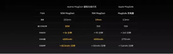 MagDart磁吸无线闪充作为realme在全新领域的最新探索,解决了传统无线充电发热、速度慢等行业痛点,成为手机无线充电领域的一个新里程碑。