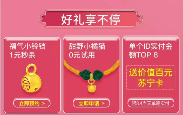 苏宁易购818超品日大牌不断,周大福真金“放价”一元起
