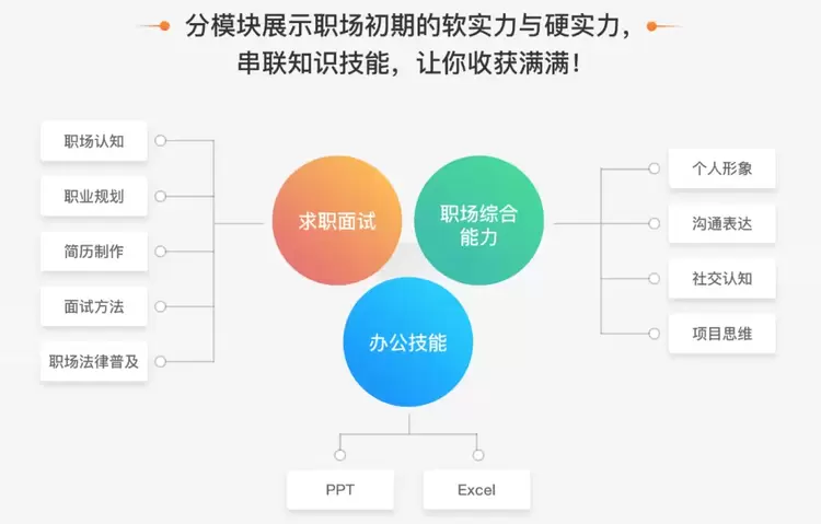 更是面向迈入职场的毕业生量身打造了职业路径课程体系,在课程的设置上,万门教育十分注重实用性和前瞻性,致力于把前沿技术传播给更多人的初心,大大提高了初入职场的毕业生对于所学知识的实践性。为职场新人全面的解读职场规则,真正提升核心竞争力。