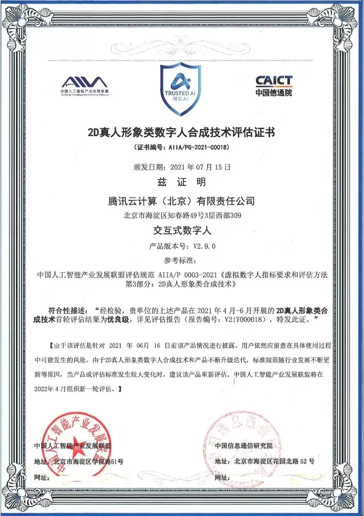 - 2021年可信AI成果揭晓 腾讯云小微数智人得到中国信通院高度肯定