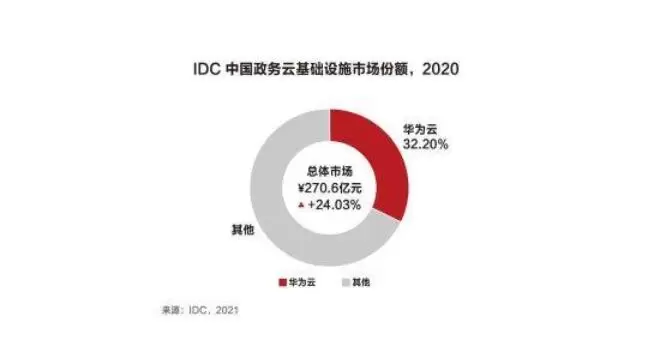 此外,IDC还发布报告称,中国政务云基础设施市场的总规模达到了270.6亿元,增长高达24.03%,其中华为云在政务云市场占有率32.2%,连续4年蝉联中国政务云基础设施市场份额第一。