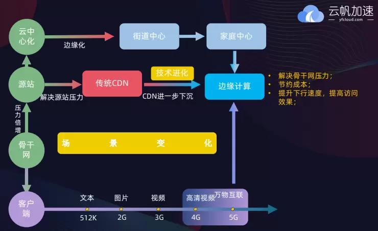 云帆加速“超级CDN”产品,很早就已经实现了覆盖三大运营商的百万节点,往后的重点以及应该需要关注的焦点,会逐步从数量迭代向质量迭代转移,尤其是在与混杂PCDN的差异化建设。提供满足解决“运营商最后一公里”的边缘网络,降低成本,提高互联互通,借用边缘CDN补充和支撑IDC的末梢神经端,实现服务品质提升,为最后一公里提供加速服务体验。