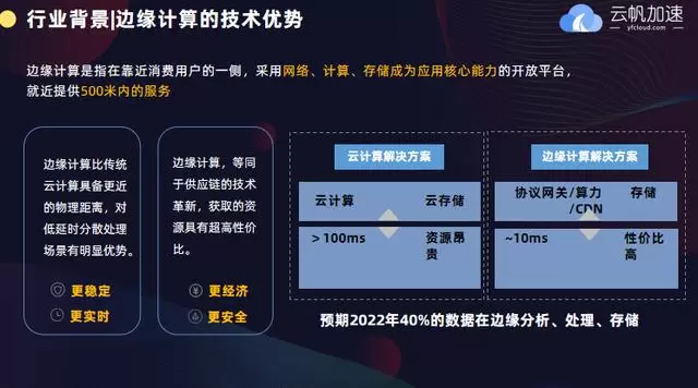 诚如云帆加速CEO王羲桀所说,边缘计算如今已经进入到新的阶段,之前要实现边缘节点下沉,必须通过海量的节点,去部署算力资源,以满足各类用户的需求。而如今,随着边缘计算逐步成为场景应用中的一个环节,网络质量和应用能力应当成为挑选边缘计算服务提供商所需要核心关注的焦点。