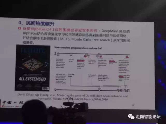 我们看到人工智能在民间的热度上升更快,尤其是当去年谷歌的阿法狗战胜了李世石之后,尤其是它战胜李世石的方式和二十年前IBM深蓝战胜象棋的办法不同,是采用大数据战略的自我博弈训练的方法,引发出现媒体报道的高潮。