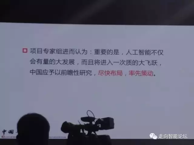 因此在这样的背景下在2015年中国工程院决定成立一个重大的咨询项目,这个项目名字叫中国人工智能2.0发展战略研究,为什么叫2.0,因为项目专家组认为,从现在开始起,AI不仅会有量的大发展,而且将进入一次质的大飞跃,中国应予以前瞻性研究,尽快布局,率先策动。