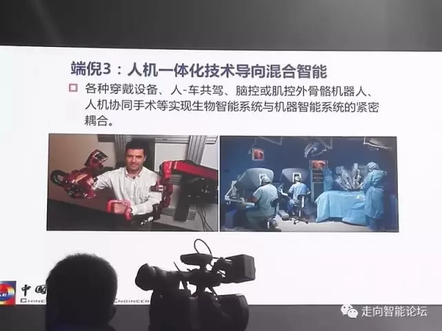 第三个阶段,人机一体化技术导向混合智能。这上面是外国做成功的系统,我们可以看到各种各样的穿戴设备。