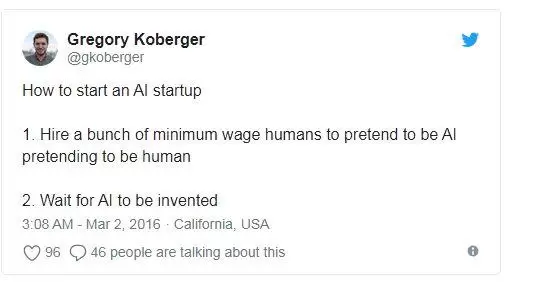 在其他情况下,公司会伪造它直到它们成功,告诉投资者和用户他们已经开发了可扩展的AI技术,同时秘密地依赖人类智慧。