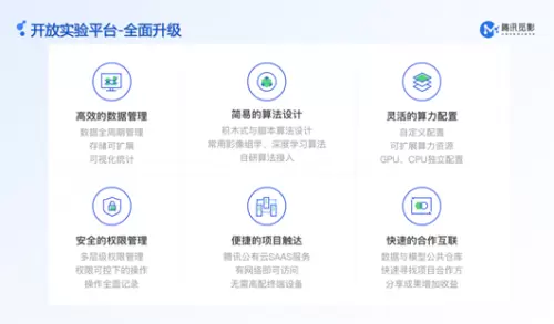 基于此,腾讯觅影开放实验平台希望为医疗影像AI跨行业合作,不断提供新的解决思路与路径。开放实验平台作为腾讯公有云的SaaS服务,实现了有网络的地方即可访问项目和数据,并且进行人工智能算法训练。同时,通过云储存、合作中心、数据技术中台等功能,可实现数据和业务流程的互联互通,与全行业形成以SaaS服务为核心的长久连接关系,如同打开水龙头就能用水一样,让不同的科研需求、转化需求在平台上轻松找到合适的合作对象,促进院内院外的协同创新,缩短科研课题与产品研发的对接与打磨时间,提升医学AI生态的整体研究能力,加速完成医疗影像等人工智能产品的开发和落地。