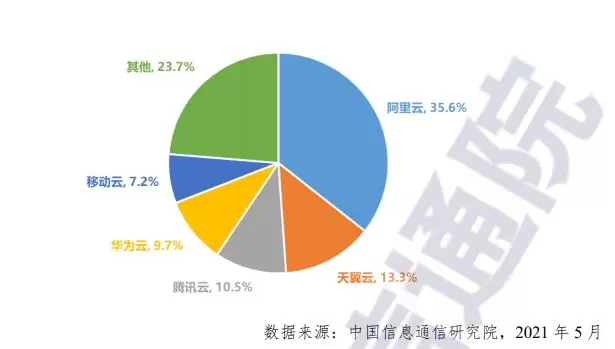 最新统计的IaaS市场份额中,阿里云、腾讯云、天翼云、华为云、移动云分别占据前五。PaaS方面,阿里云、腾讯云、百度云、华为云位于市场前列。