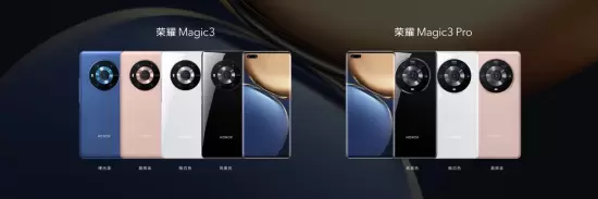 配色方面,荣耀Magic3带来了晨晖金(荣耀Magic3、荣耀Magic3 Pro)和曙光蓝(荣耀Magic3)两款全新素皮版配色。除此之外,荣耀Magic3系列玻璃后壳版则采用了亮黑、釉白两款色。