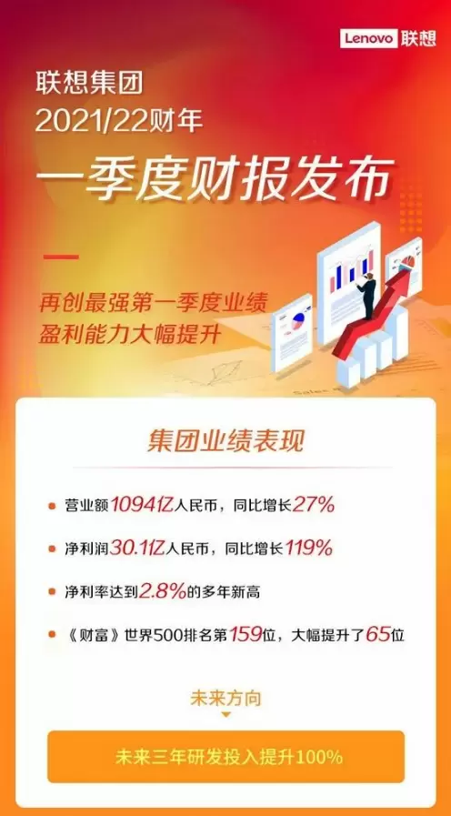 随着5G和云计算等技术飞速发展,越来越多远程协作、分布式办公等数字化办公形式成为大家日常工作场景的一部分。这不仅极大改变了我们的办公习惯,更是推动远程办公装备获得高速增长。近日,联想发布2021/22财年第一财季(即2021年Q2)财报,业绩创历史新高,收入1094亿元,净利润30.1亿元,同比增长119%,实现翻番。而在备受关注的核心主业个人电脑和智能设备业务领域更是表现亮眼,联想中国区PC销量市场份额达到40%,年比年大增4.2个百分点,销量增长是PC整体市场增速的2倍,创历史同期新高。