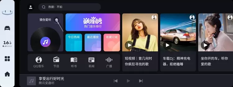腾讯随行服务将囊括丰富的日常出行及娱乐应用,涵盖影音、旅行、游戏、美食、资讯、出行生活服务等多个小场景,满足用户学习、娱乐、日常生活的不同需求;爱趣听车载APP整合了海量的音乐资源,用户可以一站式享受动听音乐;也可以通过腾讯系的个人账号来收藏和同步感兴趣的内容,系统将根据用户的个人使用偏好和习惯,定制推荐“千人千面”的专属服务。
