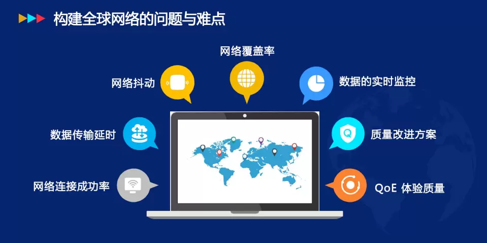 在服务全球开发者的过程中,李淼认为构建全球网络的问题与难点主要在于网络连通率、数据传输延时、网络抖动、网络覆盖率、数据的实时监控、质量改进方案和 QoE 质量体验。为了解决这些问题,融云分别基于 UDP 和 TCP,搭建了 RTC 和 IM 的全球传输网络,最终形成了覆盖全球的一体化通信网。