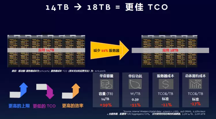 切换成更大容量的硬盘能带来什么样的优势呢?显著的优势之一就是TCO(总体拥有成本)的降低。