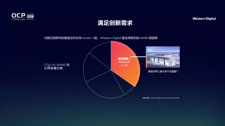 在企业级SSD产品方面,西部数据也占据着牢固的优势。我们知道SSD需要有大规模的Flash生产和供应能力,西部数据和铠侠一起拥有全世界34.9%的Flash的产能,也构建了全世界最大的千兆晶圆厂,所以西部数据在闪存颗粒方面拥有着规模优势。