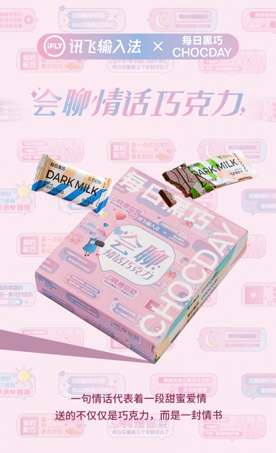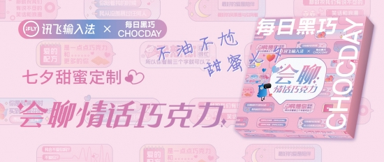 一直以来巧克力是恋人之间的爱情信物,所以七夕怎么少得了象征甜而不腻的黑巧呢?这个佳节,甜蜜表白来袭,讯飞输入法AI聊天助手联合每日黑巧发布限定会聊情话巧克力礼盒,并上线同款情话巧克力键盘皮肤,用甜蜜情话“解锁”高质量表白!