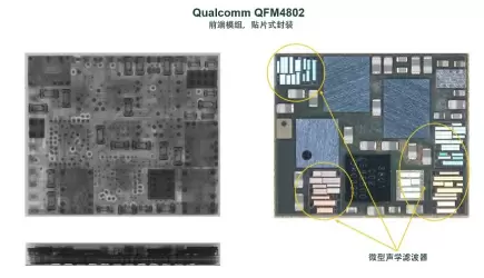 在智能手机中的射频前端应对射频需求的指数级增长的同时,射频前端部分也被要求减少在设备中的空间占用。换句话说,射频前端处在进退两难的境地,需要尽量平衡这两个相互矛盾的需求。那么,5G的射频前端如何在提升性能的同时保持结构紧凑?答案是通过电子集成技术。下图是一个作为接收信号的射频接收路径或链接的前端模组图片。在5G智能手机中印刷电路板的空间非常有限,模组有助于缩小印刷电路板上电子元器件的尺寸。